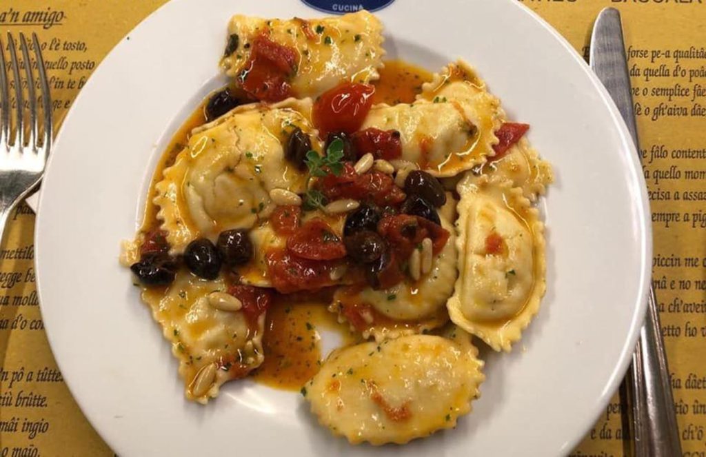 Tortelli di Spinaci (Spinach Dumplings): Handmade, rich in fillings, delicate taste, with homemade tomato sauce.